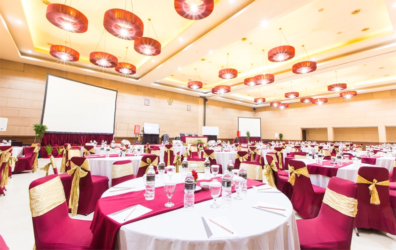 Mengusung konsep semi-resort, ballroom Grand Sunshine memberikan kesan segar dan modern. Venue ini ideal untuk acara besar—mulai dari corporate gathering, wedding, hingga national meeting—dengan dukungan teknologi AV lengkap dan dekorasi berkarakter budaya Indonesia. Suasananya sangat cocok untuk event formal yang ingin tetap terasa santai dan refreshing.