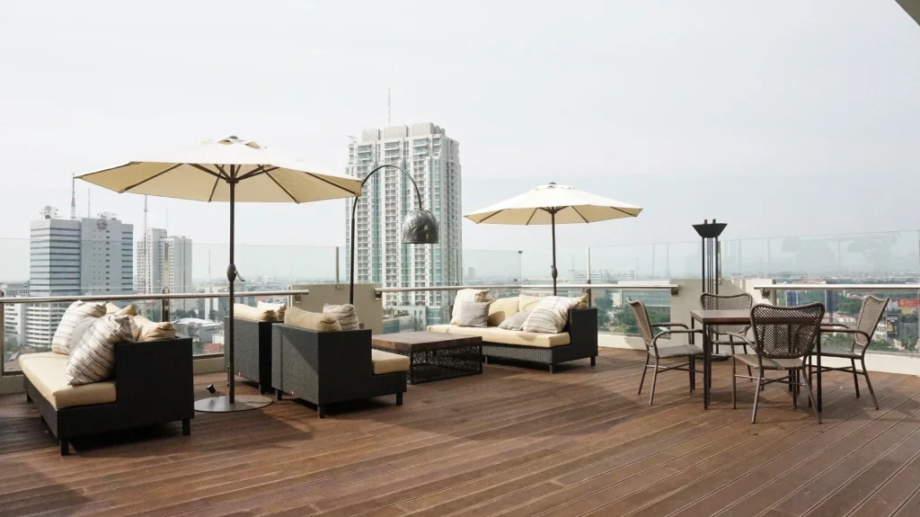 Restoran rooftop dengan view city lights Surabaya yang memukau. Menu Indonesia, Asia, dan Western tersedia, menjadikannya tempat ideal untuk dinner romantis, perayaan ulang tahun, atau sekadar menikmati malam dengan panorama kota dari ketinggian.