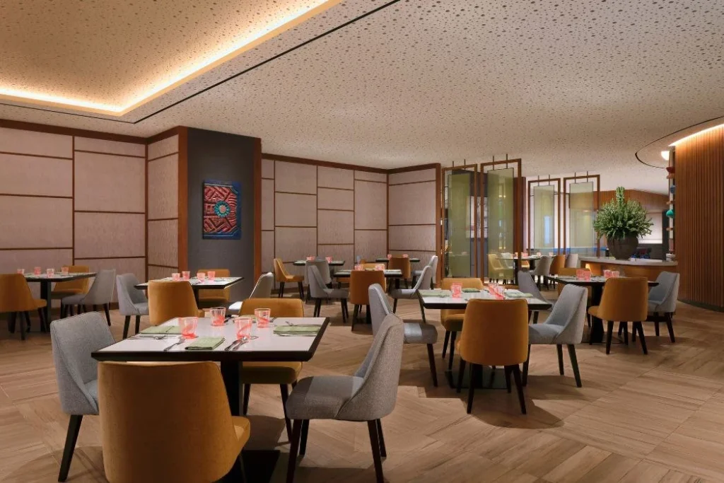 Restoran buffet dengan pilihan menu internasional dan Asia yang sangat lengkap. Tempatnya luas, nyaman, dan cocok untuk sarapan, makan siang, hingga dinner santai. Standar pelayanan hotel bintang lima membuat makan di sini terasa lebih eksklusif.